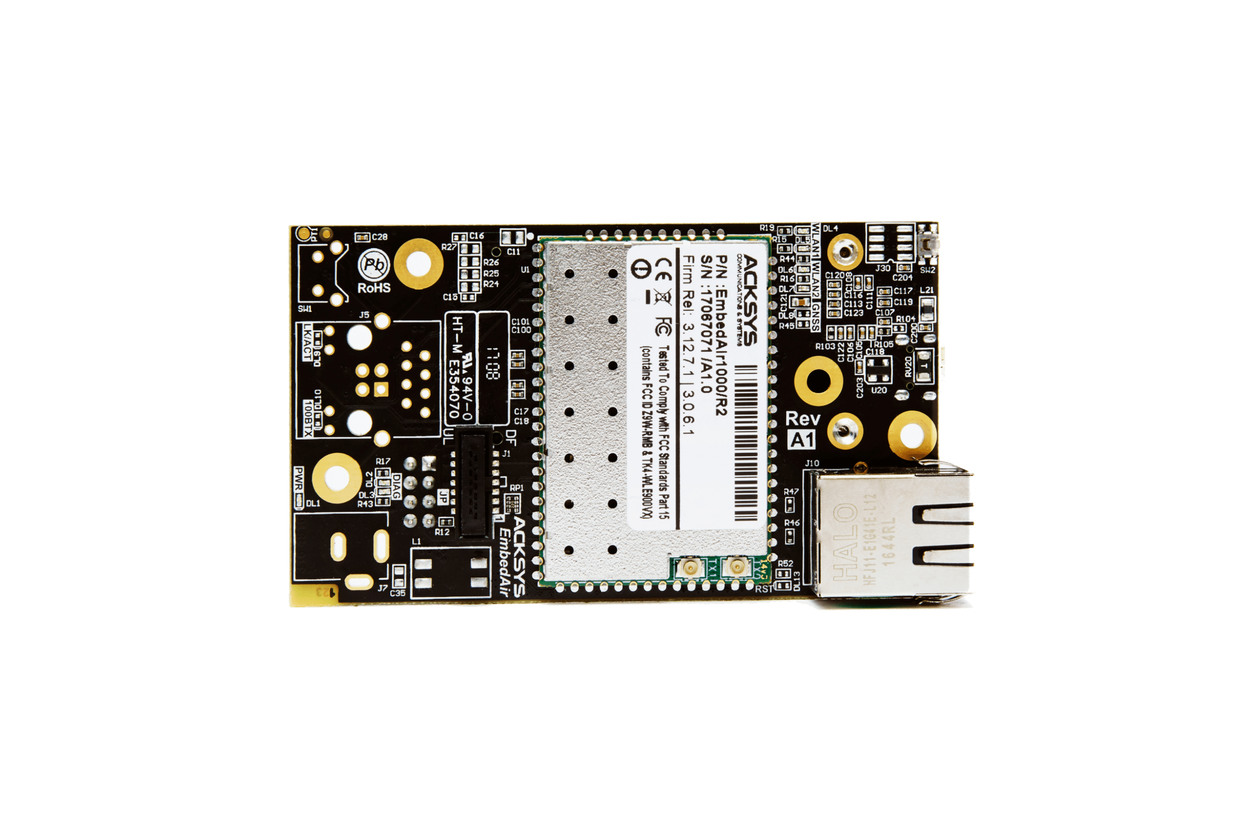 | EmbedAir/CB | Carte d’évaluation avec antennes et alimentation incluses. Module EmbedAir100 ou EmbedAir1000 à commander obligatoirement avec. |
