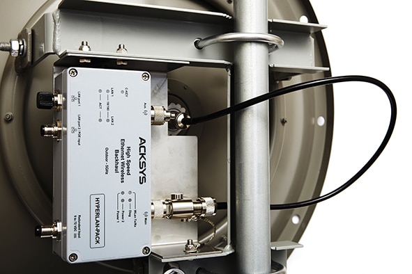 HyperLan-Pack est une solution qui permet d’établir une connexion Ethernet point à point haut débit sans fil entre bâtiments, usines, caméras de surveillance IP, plateformes offshore et installations temporaires … pour raccorder des réseaux ou des équipements Ethernet.