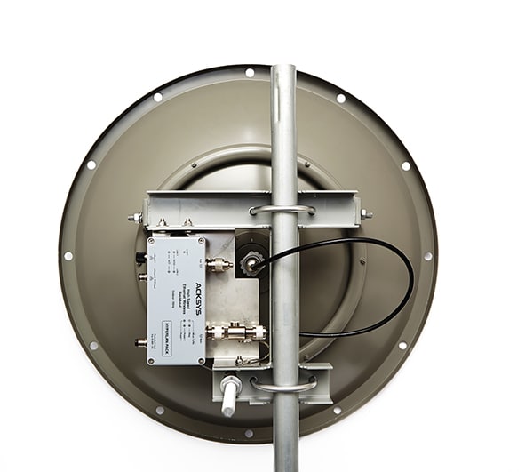 Boîtier en fonte d’aluminium IP66 (L : 80 x l : 175 x h : 57 mm) ; Diamètre antenne directionnelle : 60 cm (28 dBi)