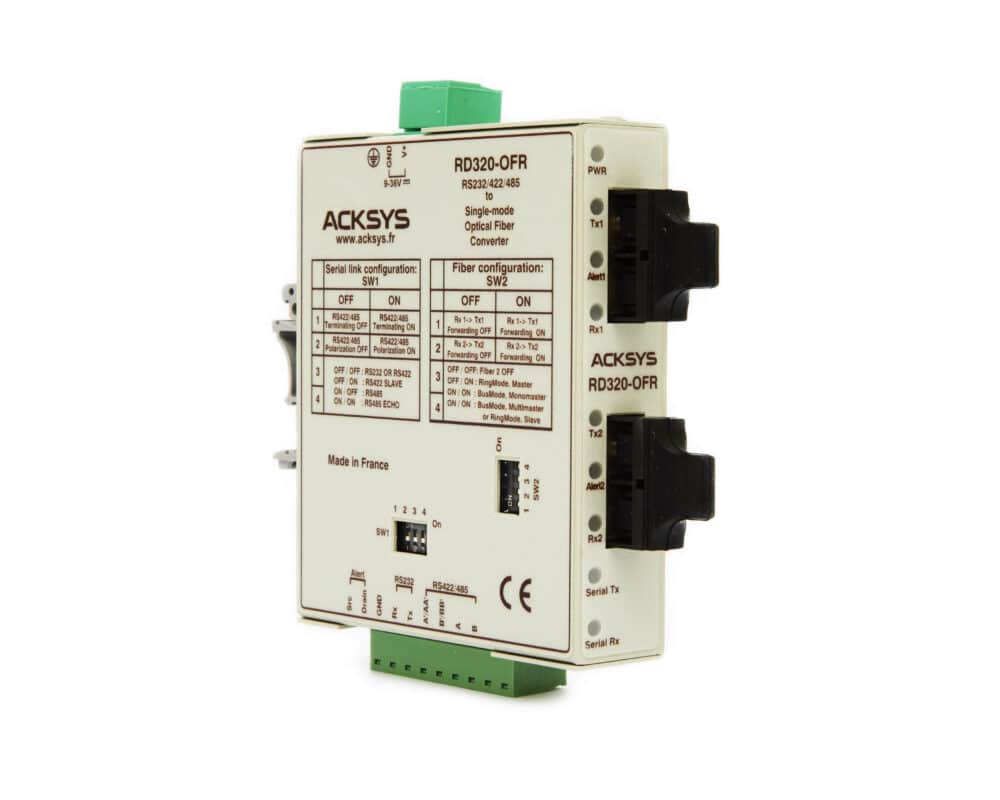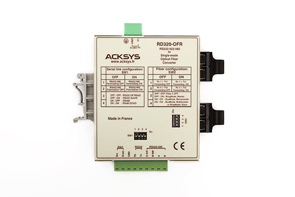 La série RD320-OFx offre en standard un mécanisme permanent de contrôle de rupture des fibres optiques et signale sur une DEL et un contact sec toute anomalie.